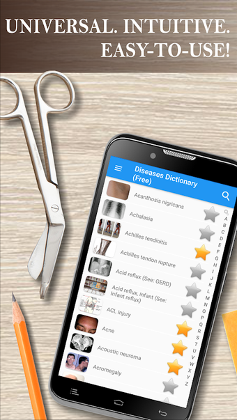 تم تصميم تطبيق القاموس الطبي المجاني للاستخدام دون الاتصال بالإنترنت لأجهزة Android اللوحية والهواتف الذكية. يتيح لك البحث عن الاضطرابات والأمراض الطبية الشائعة والنادرة. يتضمن التطبيق وصفًا للأمراض بالإضافة إلى أعراضها ونصائح العلاج. من السهل جدًا استخدامه ويعمل دون الاتصال بالإنترنت، مما يعني أنك لا تحتاج للقلق بشأن تكاليف البيانات عند البحث عن الأمراض.